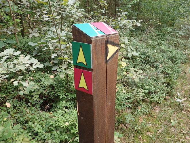 13.47 Uhr / Km 31,8 Teilweise verliefen die Lila Krönung und der Königinnen-Weg auf identischen Wegen, aber nicht überall. Also war es besser, sich einfach nur an den roten Pfeilen zu orientieren. |