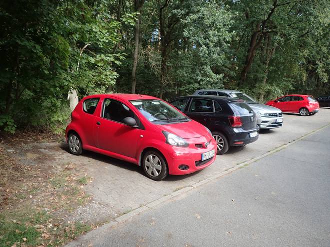 Parkplatz Kronsbergheide 14.08 Uhr / Km 34,4 Aber zuvor machte ich mich über die Verpflegung her. Vor allem Cola kippte ich in mich hinein. Die war am vorherigen Verpflegungsstand schon leer gewesen. |