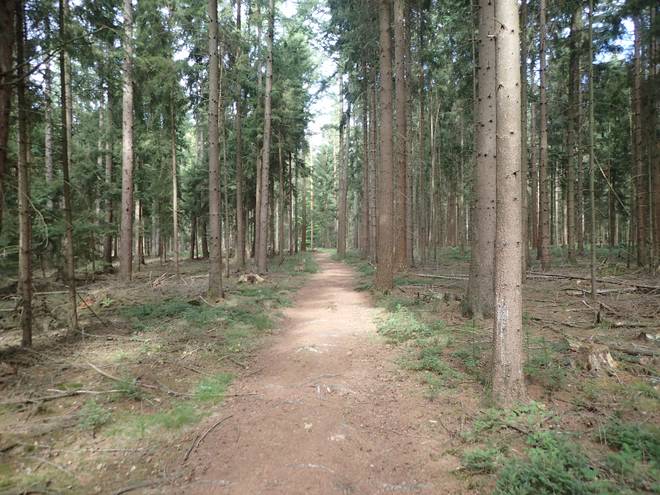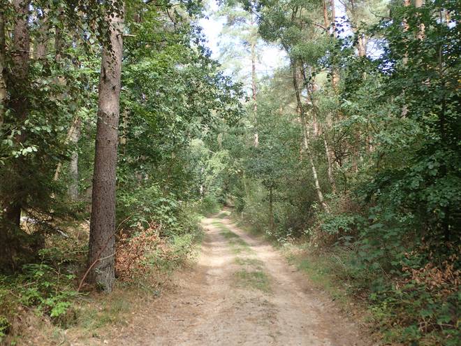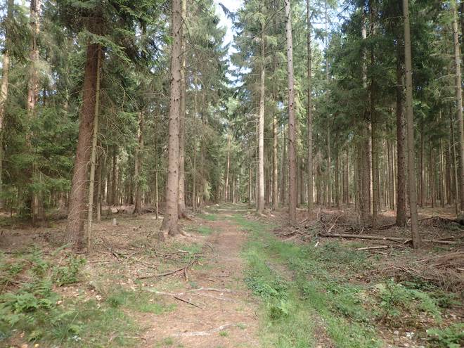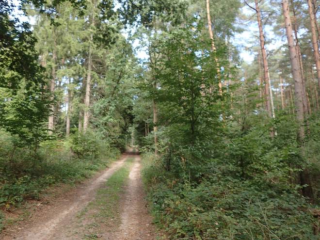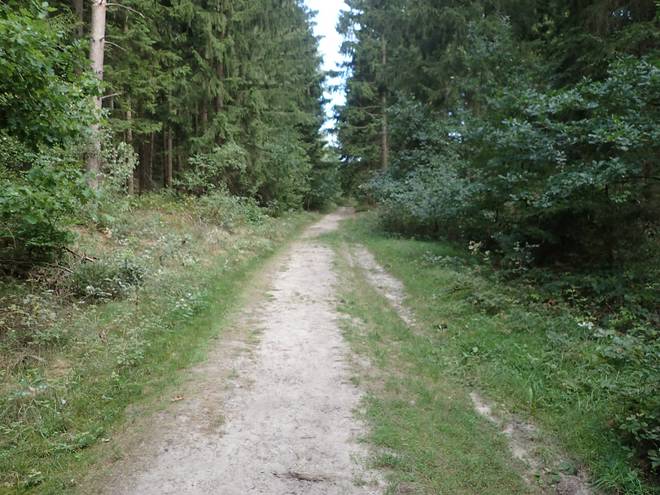 15.10 Uhr / Km 42,3 Nach plattem Land und Ort endlich wieder Wald. |