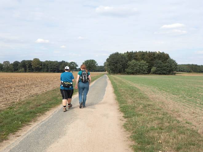 14.57 Uhr / Km 40,3 Hier überholte ich Margarete und Yessica, die "nur" zwei Wege (Königinnen-Weg und Sagenhafter-Hünen-Weg) abliefen und damit das Heide-Diplom in Silber schafften. |