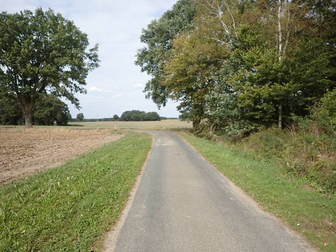 Mühlenweg Oldendorf 15.09 Uhr / Km 42,2 Eigentlich war es egal. Ich würde jetzt ohnehin nicht anhalten, um Trinken oder Souvenirs zu kaufen. |