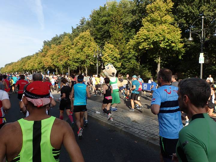 Straße des 17. Juni (B 2) 9.27 Uhr / Km 0,02 Los ging es. Mein Marathon Nr. 261 war gestartet. |