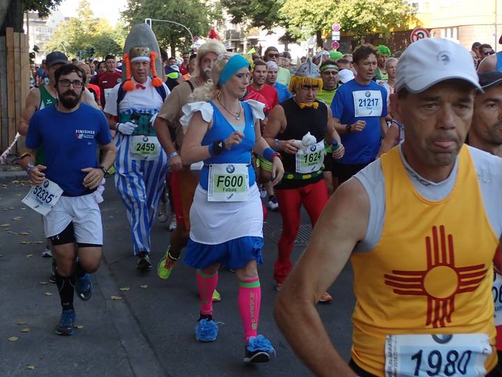 Alt-Moabit 9.51 Uhr / Km 4,2 Asterix, Obelix, Falbala und vermutlich Majestix verfolgt von einem Römer. |