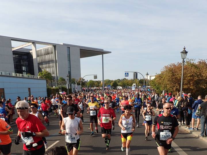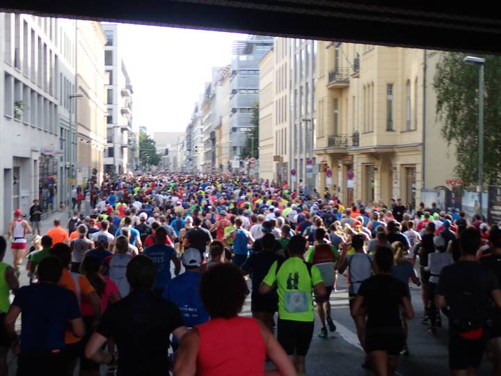 Straße des 17. Juni (B 2) 9.28 Uhr / Km 0,1 Und da kamen noch ein paar Tausend Läufer mehr. |