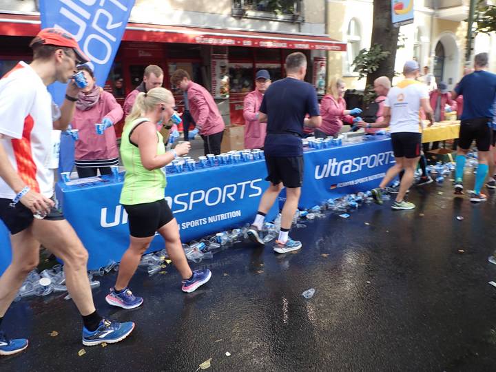 Alt-Moabit 9.56 Uhr / Km 5,1 Der erste Verpflegungsstand von insgesamt 15. |