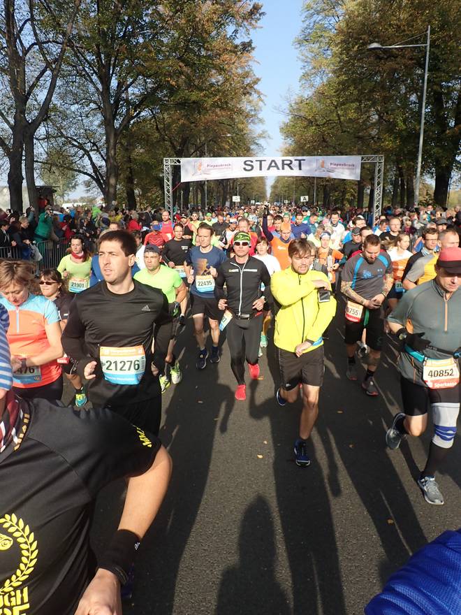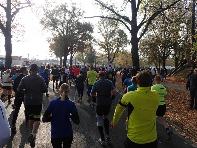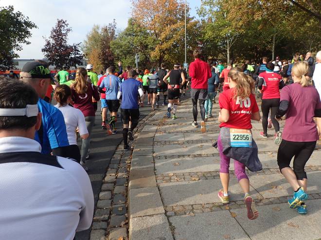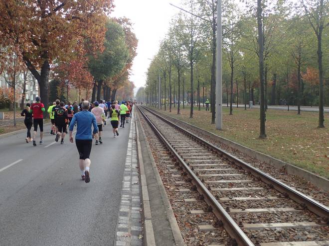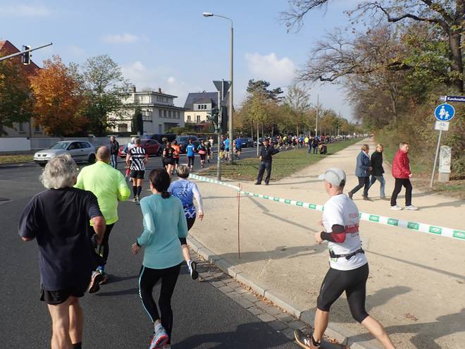 Pieschener Allee 10.33 Uhr / Km 0,2 Die ersten Meter der Strecke entsprachen noch der des Zehntelmarathons. |