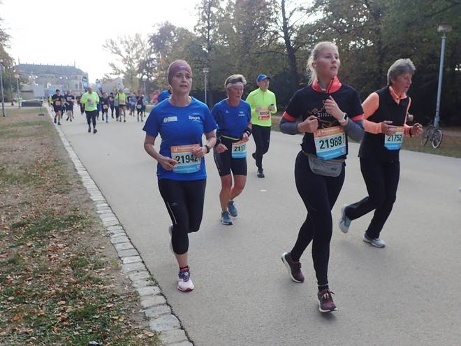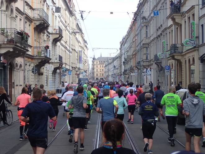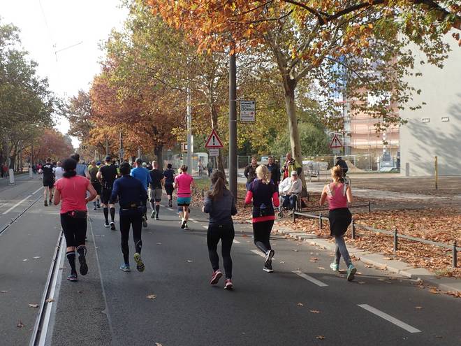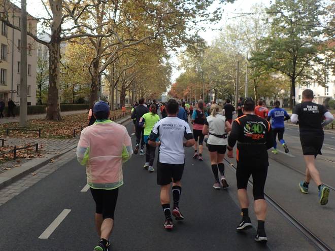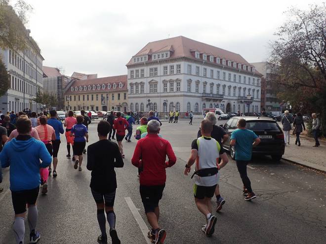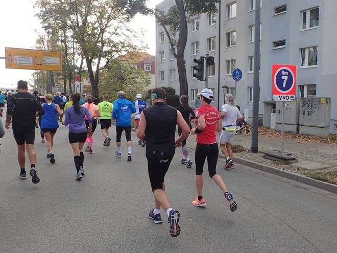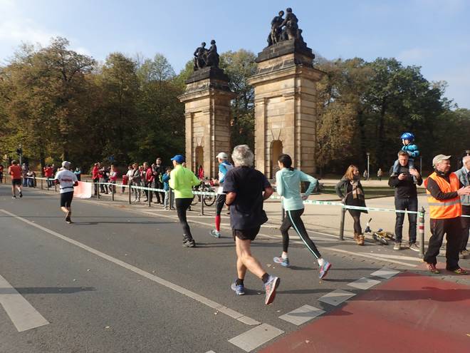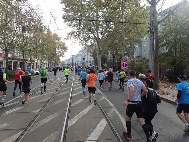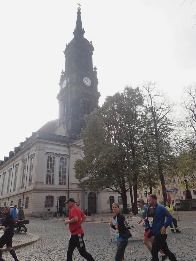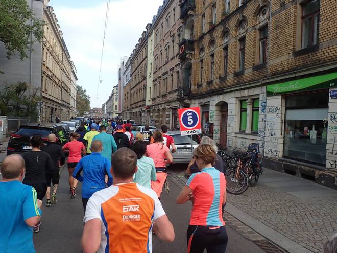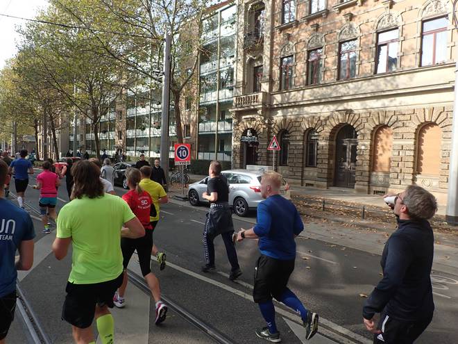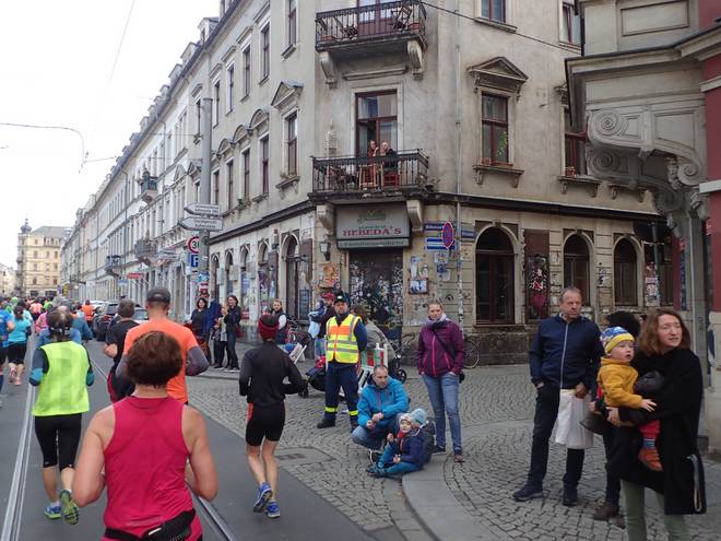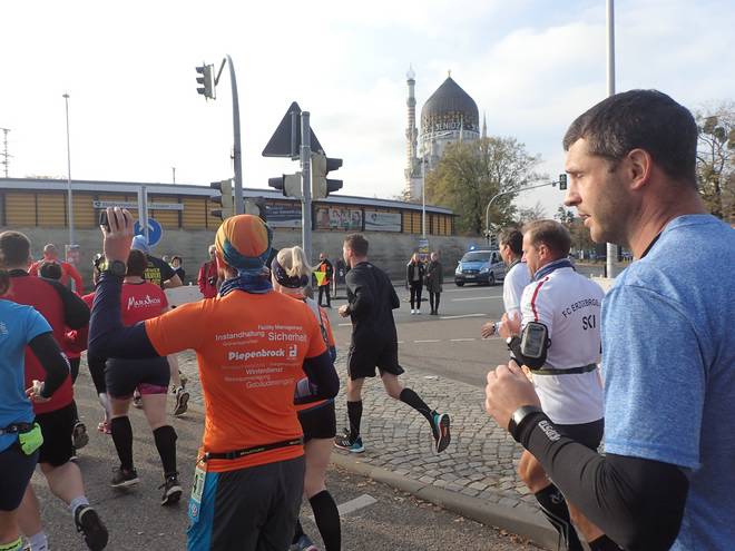 Albertplatz 10.46 Uhr / Km 2,3 Verlaufe war auf dem Kurs eher unwahrscheinlich. Viel zu viele Mitläufer. |