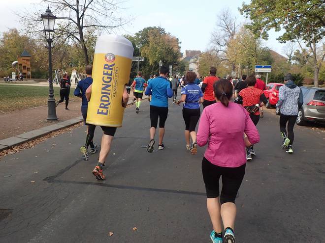 Albertplatz 10.48 Uhr / Km 2,7 Eigentlich fing es gut an für mich. Als ich aber von dem Bierglas überholt wurde, war das schon etwas frustrierend. |