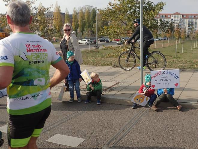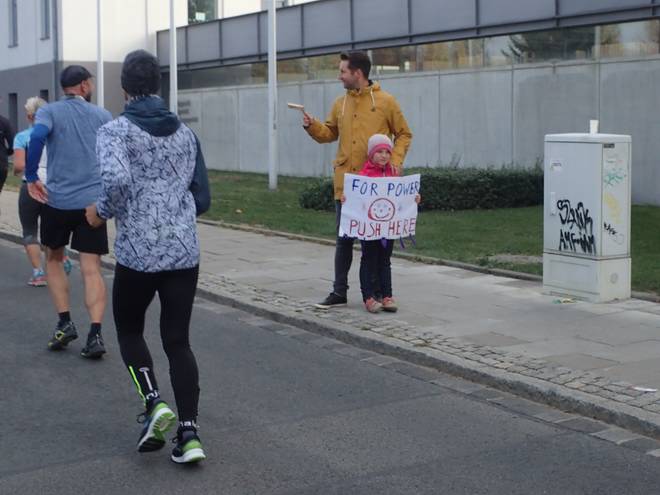 Alaunplatz 11.04 Uhr / Km 5,3 Hier traf ich noch einmal auf Robert, der aber gerade mit dem Abklatschen von Kindern beschäftigt war. |