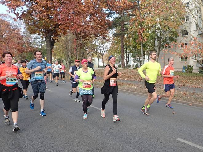 Hans-Oster-Straße 11.07 Uhr / Km 5,8 Ein wenig Power hätte mir gut getan. Selten vergingen die Kilometer bei einem Marathon gefühlt so langsam wie hier. Das war zwar nur ein mentales Problem, aber es nervte. |