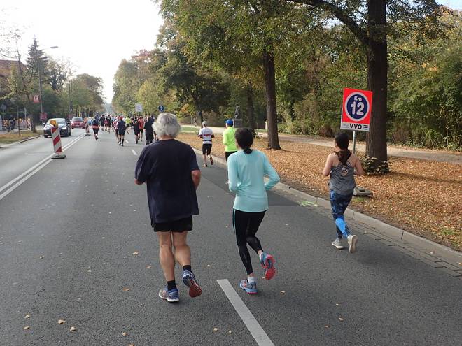 Hauptallee 12.02 Uhr / Km 15,0 29:38 Minuten für die dritten fünf Kilometer. Also wie für die ersten fünf Kilometer. Da war das Zwischentief ganz offenbar überwunden. |