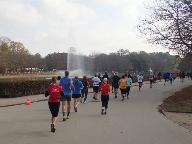 Hauptallee 11.56 Uhr / Km 14,1 Und hier der Palaisteich mit der Fontaine. |