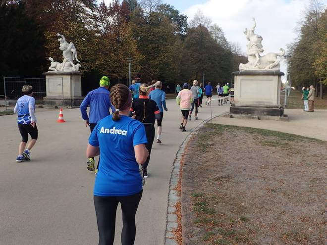 Querallee 11.54 Uhr / Km 13,8 Nach knapp drei Kilometern um den Großen Garten, ging es nun endlich in den Garten hinein. |