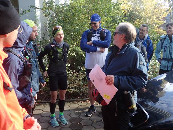 Bei der Lutherbuche 10.10 Uhr Nachdem sich die Strecken-Besprechung wegen lauter Kirchenglocken etwas in die Länge gezogen hatte, gab es noch eine besondere Ehrung. |
