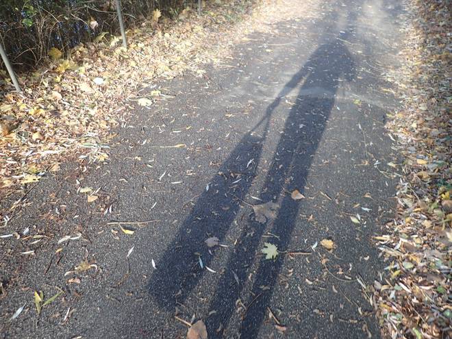 Alsterwanderweg 10.42 Uhr / 2,8 Km Der Schatten ist verzerrt. Ganz so groß war die Tasche nicht, aber schon wegen meiner Ziel-Getränke ziemlich schwer. |