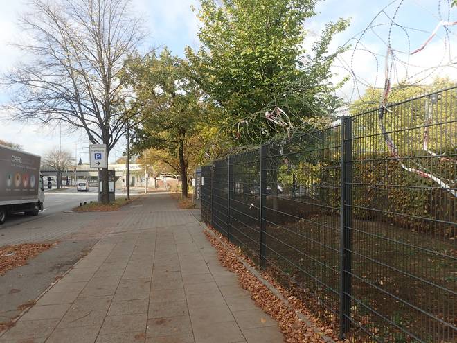 Braamkamp 11.07 Uhr Nun ohne Gepäck konnte ich endlich laufen. Ein Herr Scholz witzelte vor dem G20-Gipfel Hamburg 2017 mal, daß wir am Tag nach dem Gipfel gar nicht gemerkt haben würden, daß es den Gipfel je gegeben hat. Ein Jahr drei Monate und 23 Tage danach sieht man die Sicherungsmaßnahmen immer noch. Immerhin ist dieser Herr Scholz weg aus Hamburg. |