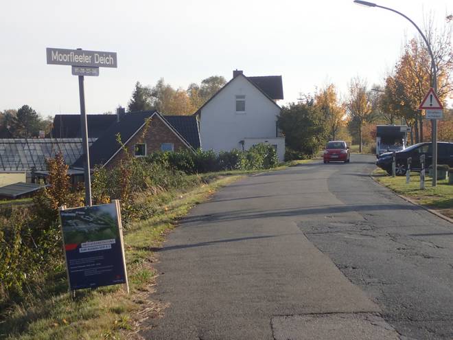 Moorfleeter Hauptdeich 14.24 Uhr / 33,2 Km Hinter der Autobahn begann der Holzhafen. |