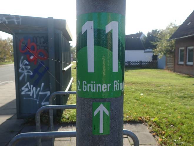 Tatenberger Weg 14.11 Uhr / 31,0 Km Zurück auf dem 2. Grünen Ring. Eine Weile würde ich diesem Weg nun wieder folgen. |