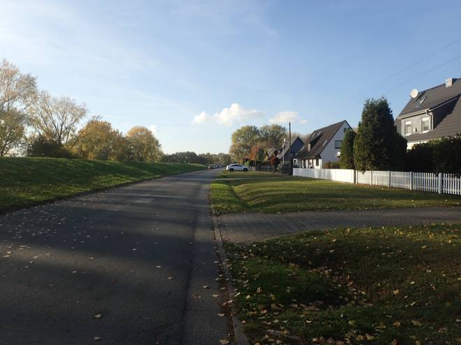 Moorfleeter Deich 14.09 Uhr / 30,7 Km Immerhin gab es ein paar hübsche Häuser zu sehen. |