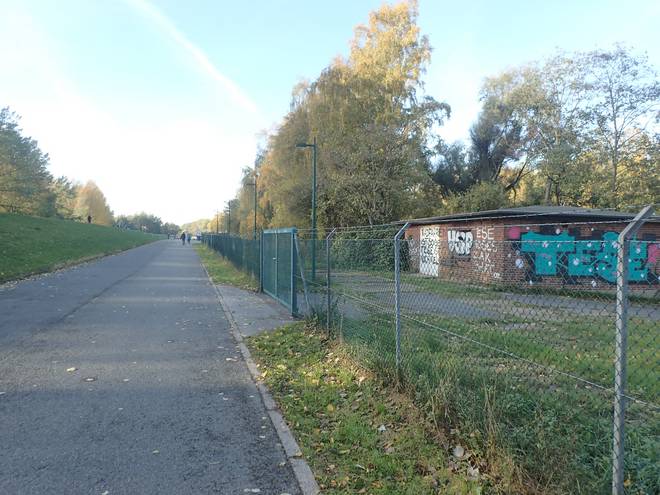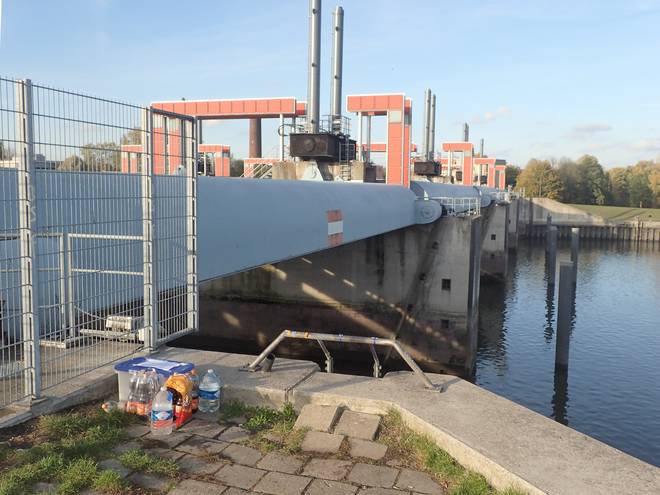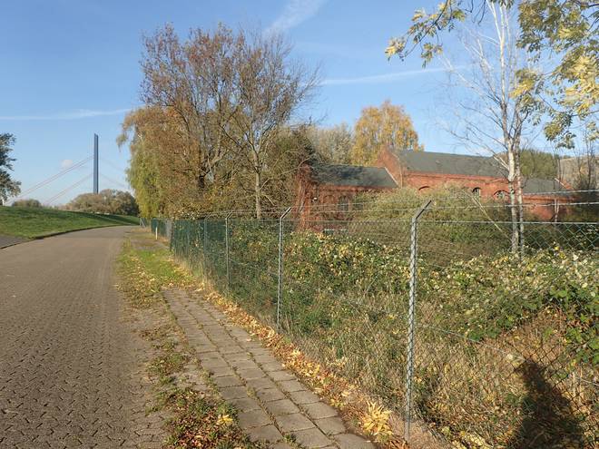 Moorfleeter Hauptdeich 14.21 Uhr / 32,6 Km Die Strecke führte nicht an den Gebäuden vorbei (das ganze Gelände ist abgesperrt), aber einen Blick war es wert. |