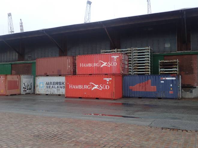 Runde 1 10.09 Uhr / Km 1,0 Im Grunde umrundeten wir immer die Schuppen 50 und 51, liefen dabei nördlich auch an Schuppen 52 und dann südlich zwischen den Schuppen und dem Hansahafen entlang. |