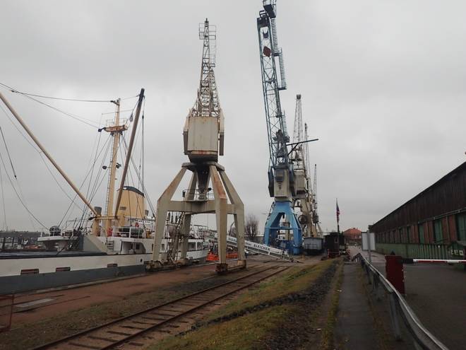 Runde 1 10.11 Uhr / Km 1,3 Entlang des Hansahafens gab es Hafennostalgie pur. Eine richtig tolle Strecke. Das, was ich an der Bunthäuser Spitze erwartet hatte, bekam ich hier geboten. |