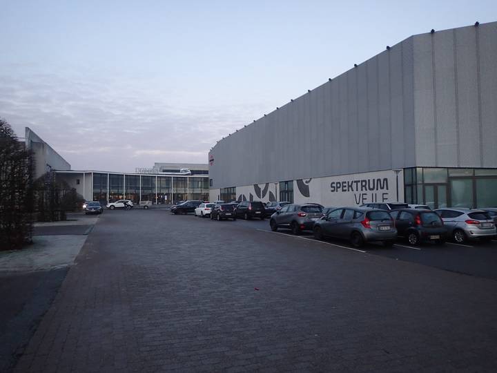 Willy Sørensens Plads DGI Huset Vejle 10.01 Uhr / Km 0,2 Vor der Halle machten wir eine Runde über den Parkplatz. |