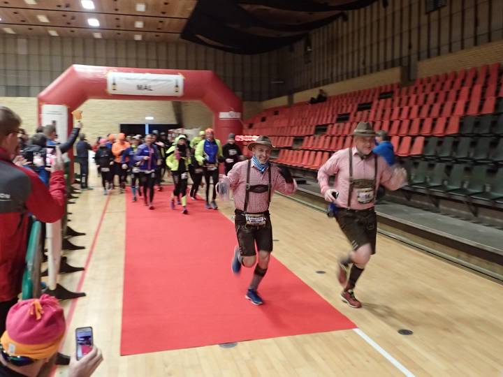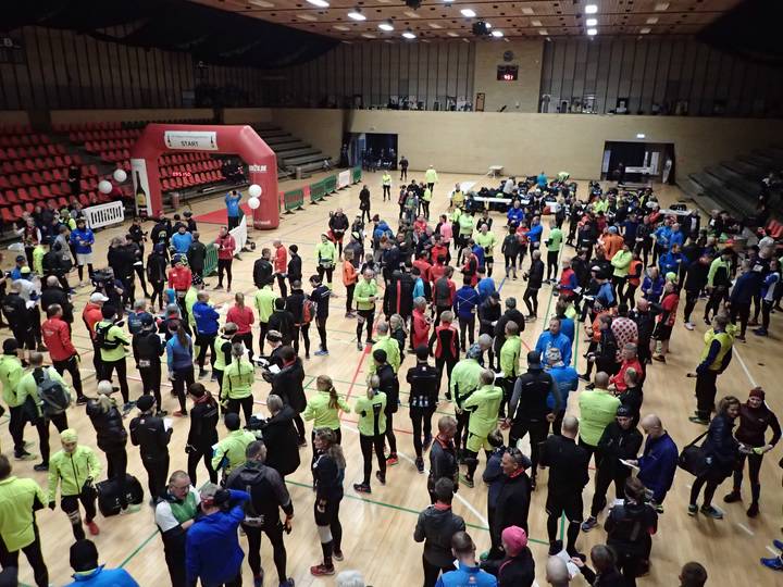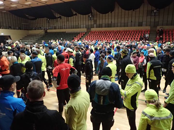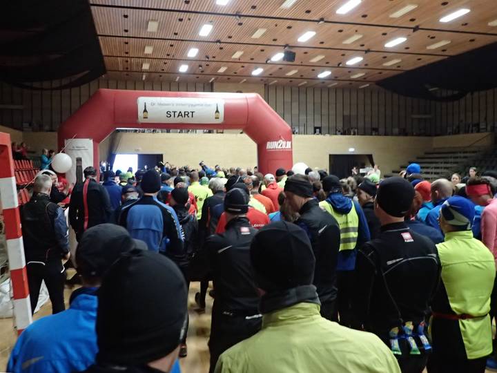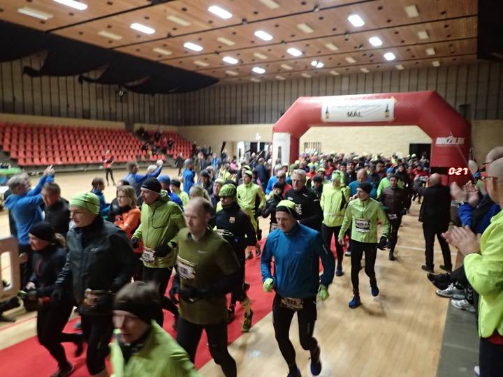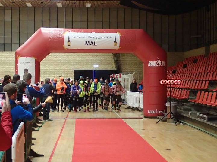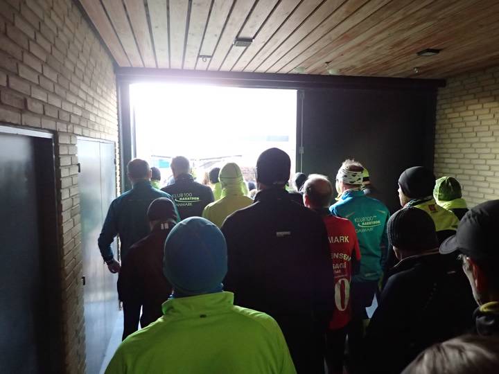 DGI Huset Vejle 9.00 Uhr 33 Teilnehmer starteten beim Frühstart für Läufer, die mit mehr als 5:30 Stunden Laufzeit rechneten. Der Schnellste war nach 3:47:42 Stunden wieder zurück. |