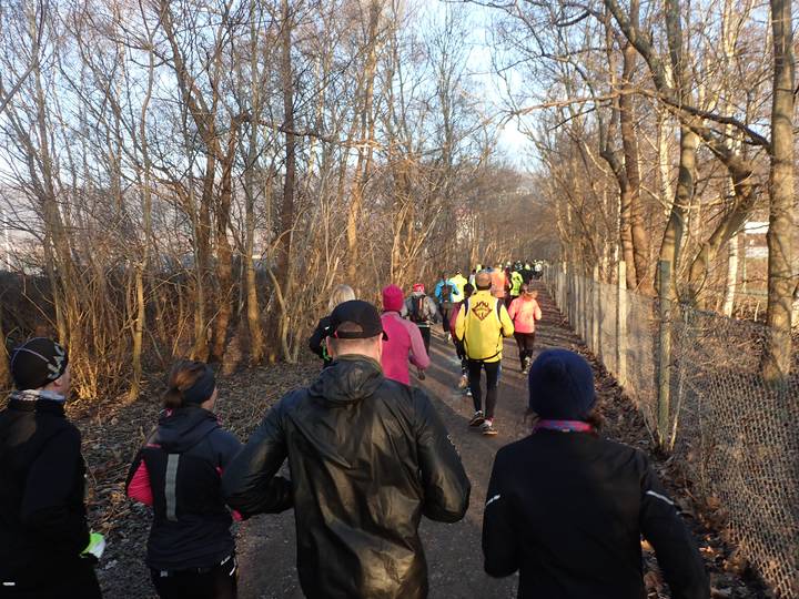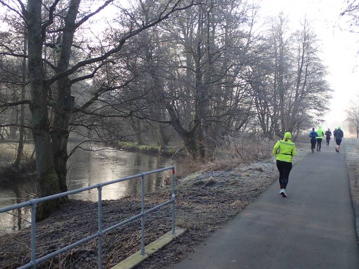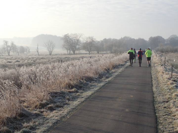 10.21 Uhr / Km 3,5 Da die Erkältung, die mich nun schon seit Weihnachten mal mehr mal weniger quälte, noch nicht völlig verschwunden war, wollte ich es ruhig angehen lassen, plante einen lockeren Lauf zwischen 4:20 bis 4:30 Stunden. Ich war seit zehn Tagen nicht mehr gelaufen. Konnte interessant werden. |