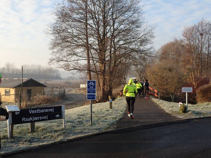 Vestre Engvej Åkæret 8.33 Uhr -3°C am Morgen in Vejle. Die Temperatur kletterte noch auf 0°C. Interessant würde die Temperatur beim Start sein. Bisher war ich noch nie bei weniger als -2°C Marathon gelaufen. Würde der Rekord fallen? |