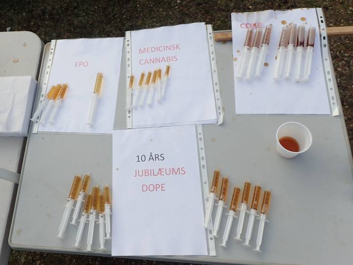 Bindeballe 12.13 Uhr / Km 21,1 Spannender sah da schon der Tisch mit dem Doping aus. So rein farblich sah alles außer der Coke doch gleich aus... |