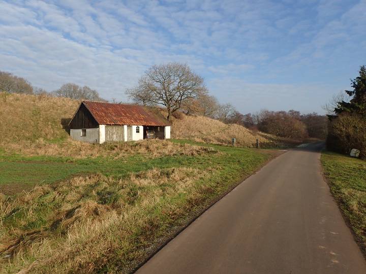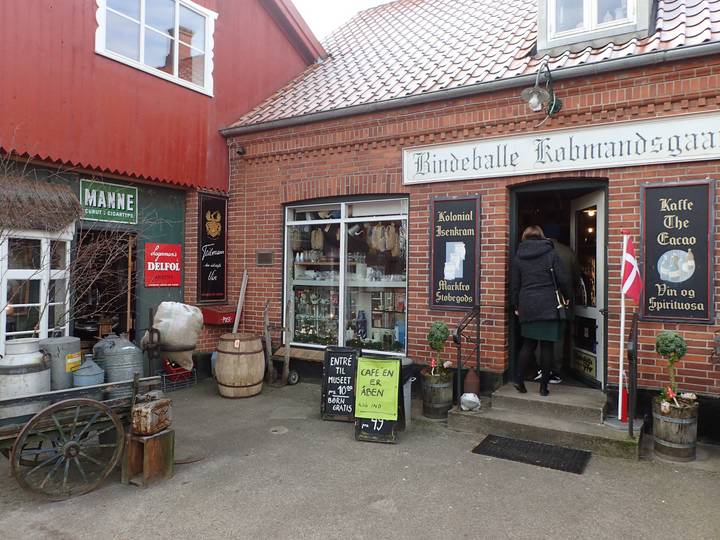 Bindeballe 12.14 Uhr / Km 21,15 Ich schaute beim Bindeballe Købmandsgård vorbei. Rein ging ich aber nicht. |