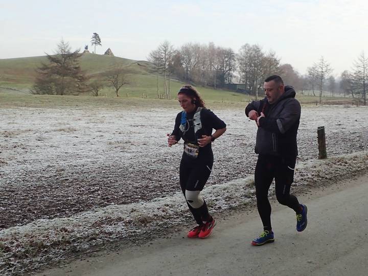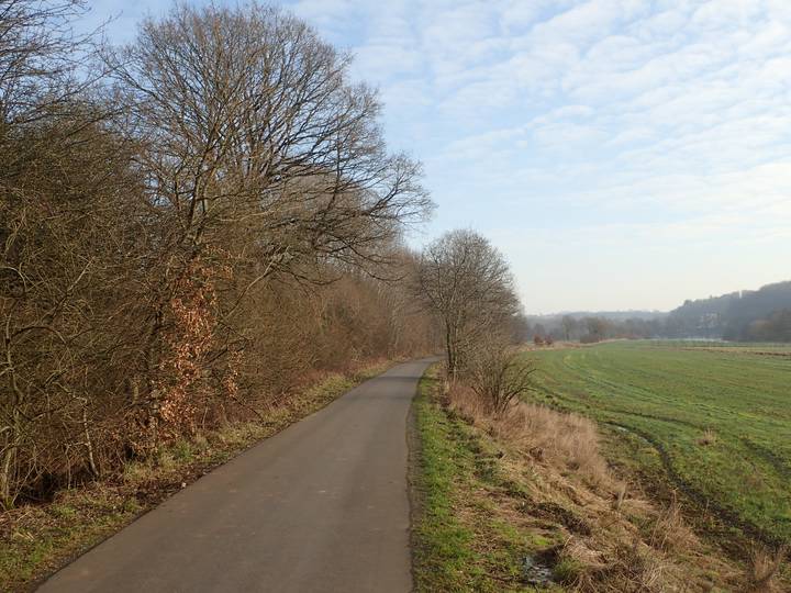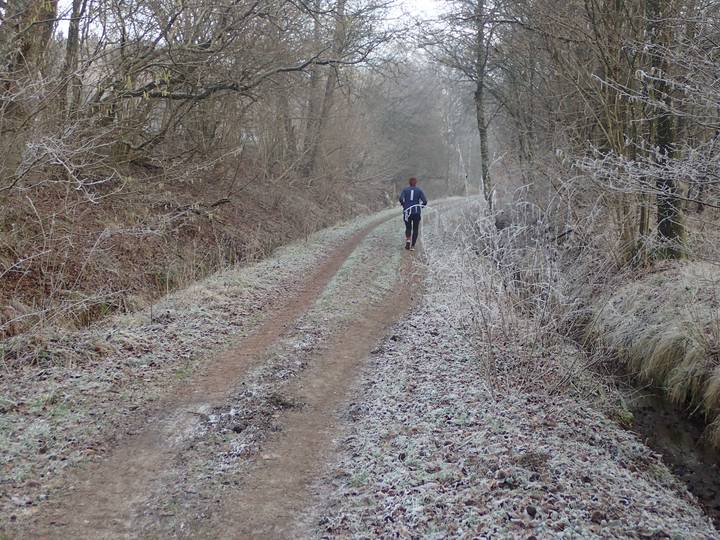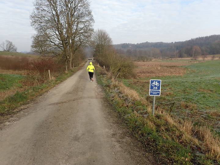 12.34 Uhr / Km 24,0 Wandernd mußte ich mein Tempo schon deshalb etwas erhöhen, weil mir sonst kalt wurde. Mit Laufen wollte es weiter nicht klappen. Immer kurz mal, aber schnell war ich wieder beim Wandern. |