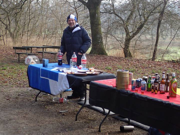 Randbøldal 12.41 Uhr / Km 24,9 Wieder der Stand des Altonaer Provinzklub-Fans. Und immer noch Lotto King Karl. Wie überlebt man das eigentlich stundenlang? |