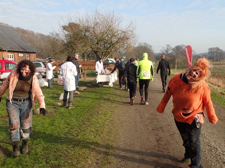 Ravning Station 13.07 Uhr / Km 27,8 Aber dann klappte Laufen ja plötzlich doch. Ich war der Läufergruppe bis zur Ravning Station hinterher gerannt, um diese beim Passieren der Zombies zu fotografieren. |