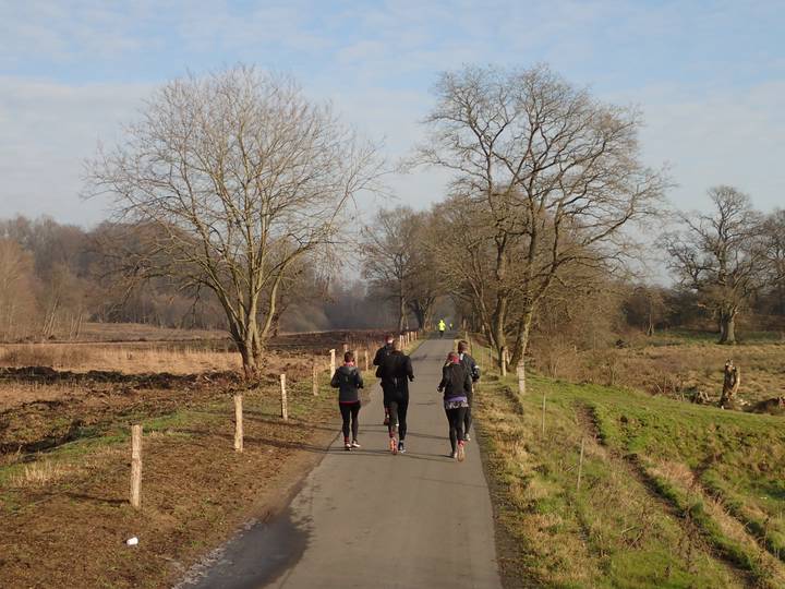 12.25 Uhr / Km 22,9 Man beachte die Läuferin im Hintergrund (also die Dritte von rechts) mit dem Handy vor der Nase. |