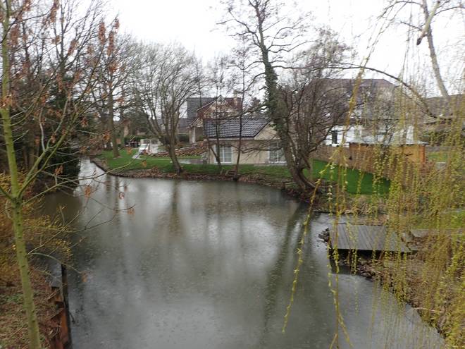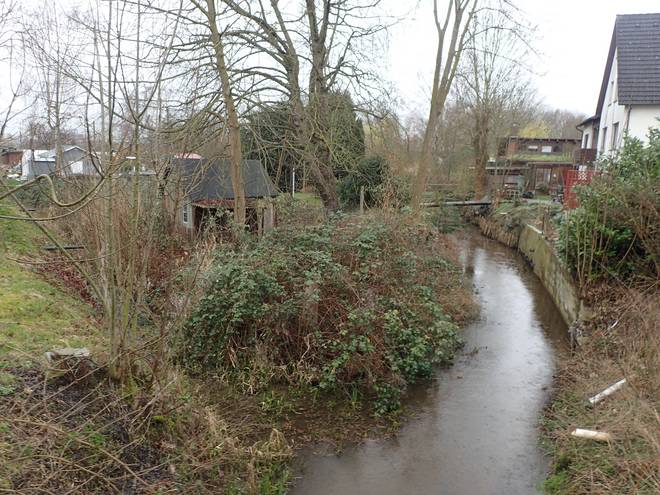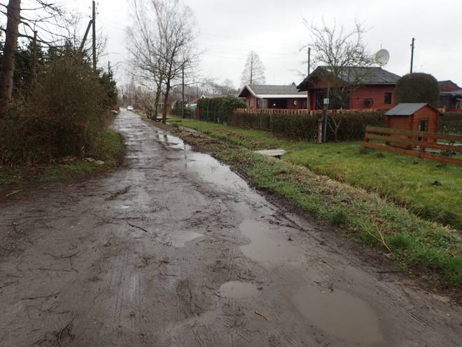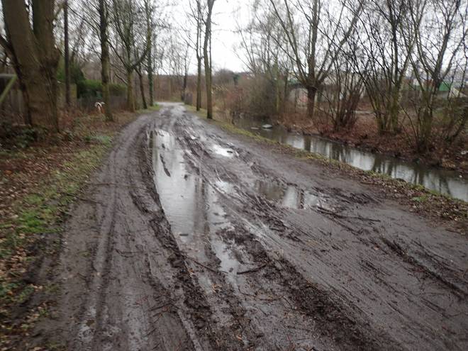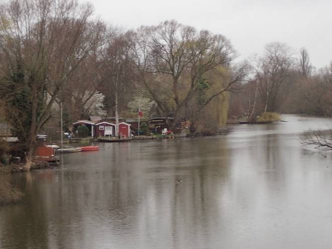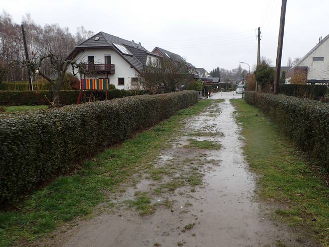 Wendts Weg 12.53 Uhr / Km 25,6 Weiter ging es durch die Kleingartensiedlung. Auf überfluteten Wegen. |