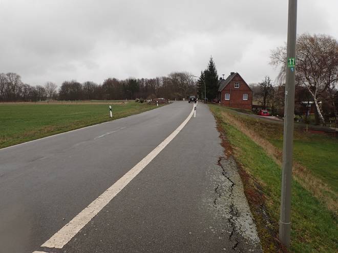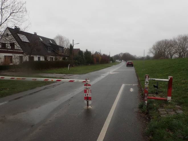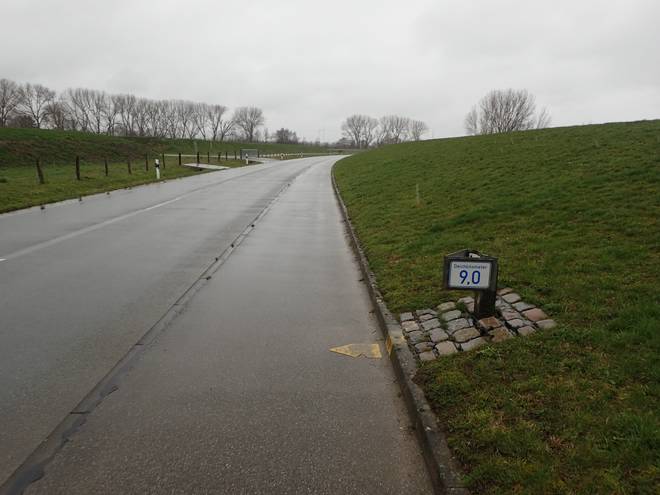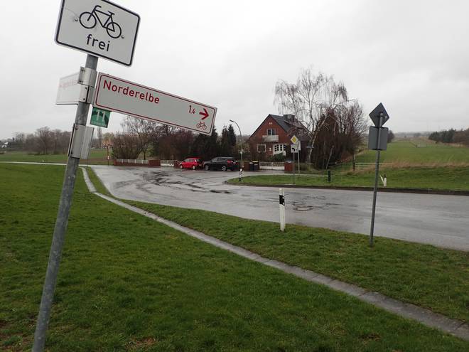 Moorwerder Hauptdeich 13.27 Uhr / Km 30,4 Eine ziemlich langweilige Ecke war das, aber zumindest kam man ohne Navigations-Sorgen voran. |