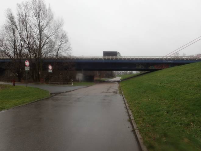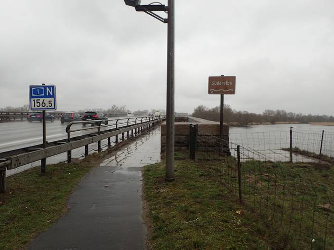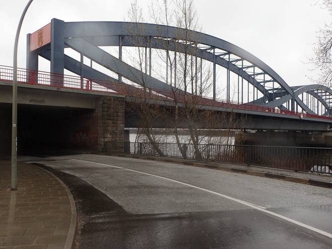 Kaltehofe Hauptdeich 15.10 Uhr / Km 42,9 Es ging unter der Autobahn A1 hindurch. |