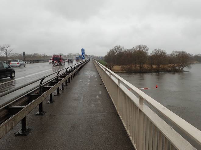 Autobahn A1 13.06 Uhr / Km 27,5 Auf offener Brücke über die Süderelbe. |