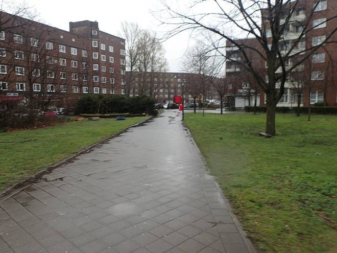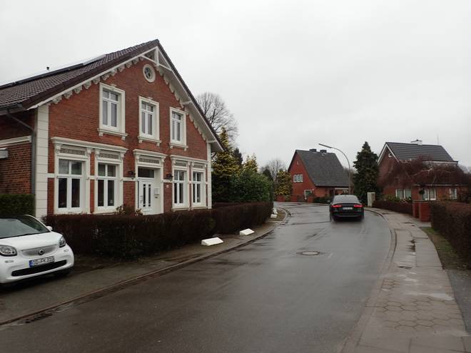 Jenerseitedeich 13.43 Uhr / Km 33,1 Nun kam ich wieder zurück in bebautes Gebiet. Dem Stadtteil Wilhelmsburg. |