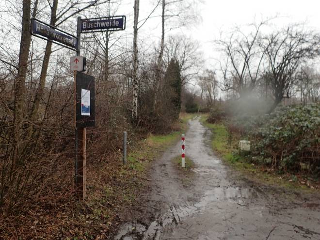 Wendts Weg Neuländer Wettern 12.57 Uhr / Km 26,3 Das Handy hatte ich inzwischen in den Rucksack gepackt. Bei dem Regen war es nutzlos. |