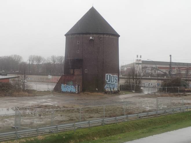 Veddeler Elbdeich 14.38 Uhr / Km 38,3 ... und hier der Zombeckturm. Aber der Verpflegungsstand war nicht zu finden. |
