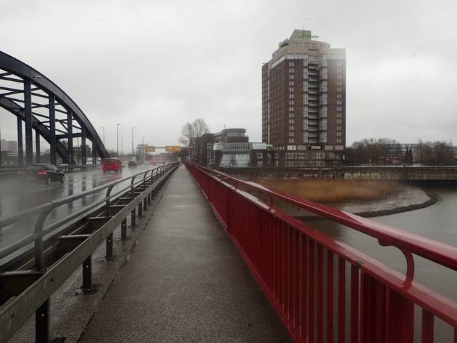 Zweibrückenstraße 14.45 Uhr / Km 39,0 So mußte ich dann hinter nach Überqueren der Norderelbe die Seite wechseln. |
