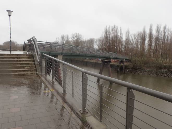 Schönenfelder Straße 13.50 Uhr / Km 34,2 Per Brücke überquerte ich die Wilhelmsburger Dove-Elbe. |