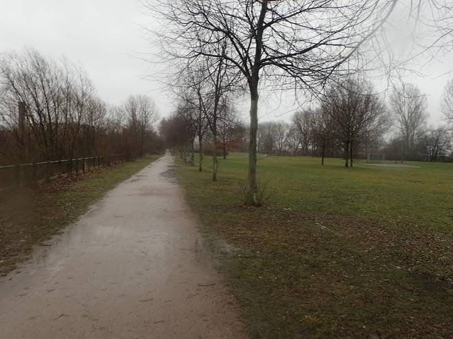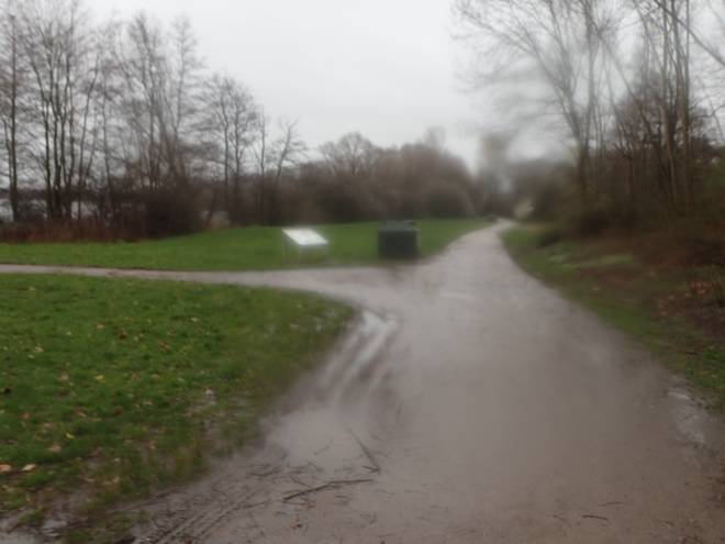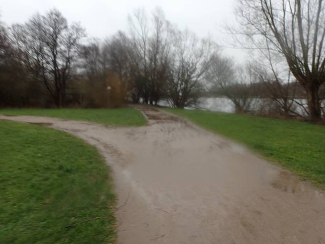 Hövelpromenade 13.55 Uhr / Km 34,9 Und nicht so matschig. Aber eigentlich auch egal, denn die Schuhe waren ohnehin längst komplett durchnäßt. |