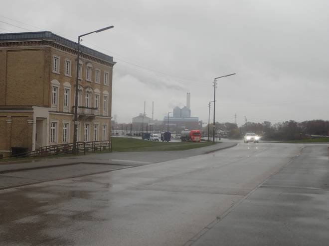 Ausschläger Elbdeich 14.54 Uhr / Km 40,5 Blick auf das Vattenfall Kraftwerk Tiefstack. |