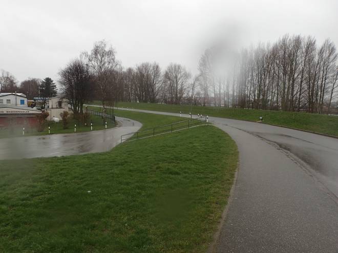 Niedergeorgswerder Deich 14.11 Uhr / Km ??,? Endlich etwas bekanntes. Hier ging es zum Energieberg von Georgswerder. Da oben steigt der Horizontweg-Marathon. Unglücklicherweise kam ich hier immer mit dem Bus her, hatte von der sonstigen Umgebung keine Ahnung. |