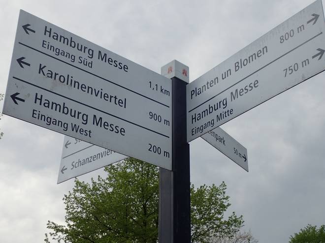 U/S-Bahn Sternschanze 16.05 Uhr Immer dieser Ärger mit der Anreise zur Messe. Wie die Vorjahre befand sich die Marathon-Messe in Halle A4, hinterm Eingang West. Dieser war 2019 aber gesperrt. Das erfuhr man aber erst vor Ort. Man konnte dann um die Hallen wandern zum Eingang Mitte. Der wäre aber von hier anders herum schneller zu erreichen. |