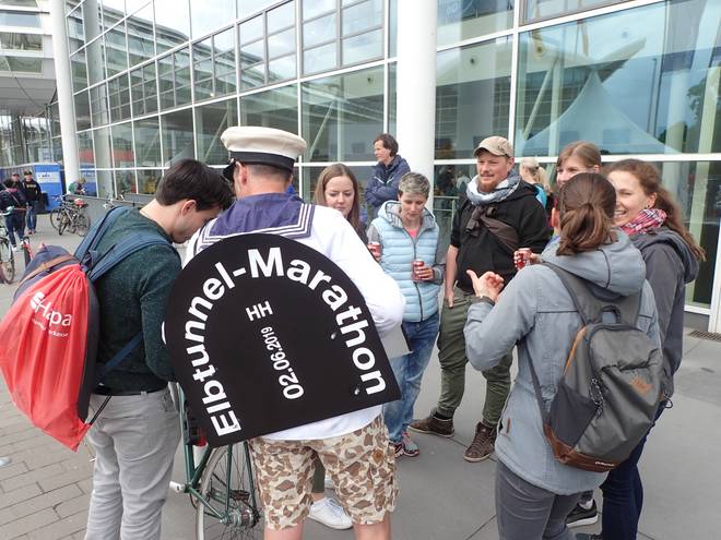 Rentzelstraße 9.28 Uhr Thorsten und die Elbtunnel-Marathon-Werbung waren auch am Start. |